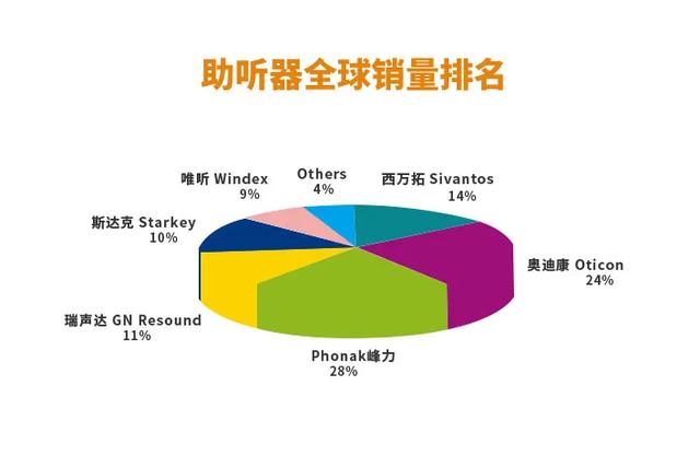占据全球销量排名前六位的助听器品牌分别是瑞士PHONAK峰力(属SONOVA索诺瓦听力集团)、丹麦Oticon奥迪康(属Demant戴蒙特集团)、丹麦Resound瑞声达、美国Starkey斯达克以及属于同一家集团的德国Signia西嘉和丹麦WIDEX唯听(同属跨国企业WS Audiology听力集团)。Signia西嘉之前所属的德国SIVANTOS西万拓集团是由西门子听力集团演变而来,而WS Audiology听力集团是2019年由WIDEX唯听和SIVANTOS西万拓合并而来。