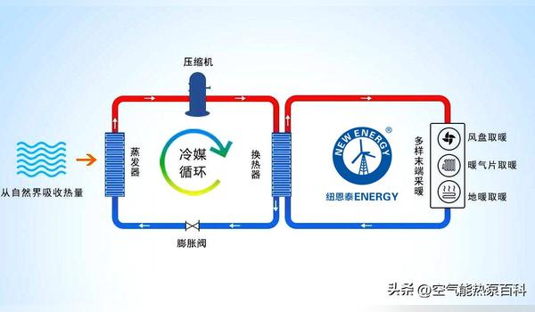 我们来了解一下空气能的工作原理。空气能的核心设备是热泵,它通过压缩和膨胀制冷剂来实现热能的传递。在供暖模式下,热泵从室外空气中吸收热量,通过压缩制冷剂使其升温,然后释放到室内,实现供暖效果。而在供暖模式下,热泵则从空气中吸收热量,通过膨胀制冷剂使其降温,然后释放到室内,实现制冷效果。通过这种方式,热泵可以将环境中的低温热量转化为高温热量,实现能量的高效利用。
