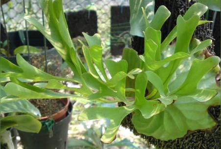 鹿角蕨是一种附生植物,它所长出来的孢子叶的样子,与梅花鹿的角十分相似,这也就得来了鹿角蕨这一个名字了。鹿角蕨是观赏性植物里面比较奇特的一种,也正是由于它奇特的特性,引来了不少观众。在一些公园、植物园里面,鹿角蕨都种植了有一些。