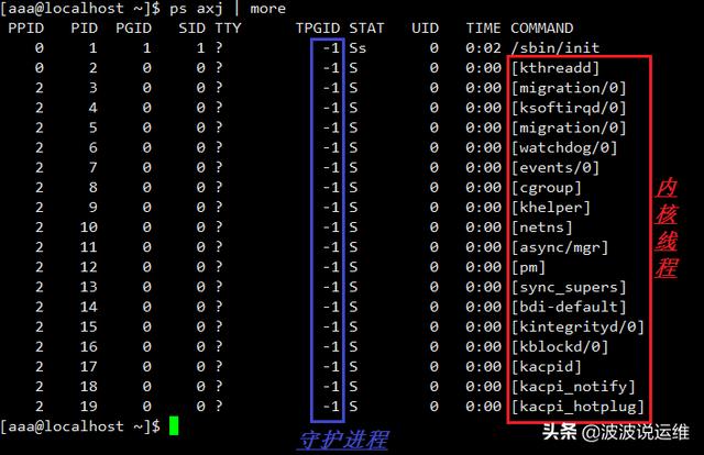 (1)凡是TPGID一栏写着-1的都是没有控制终端的进程,也就是守护进程;