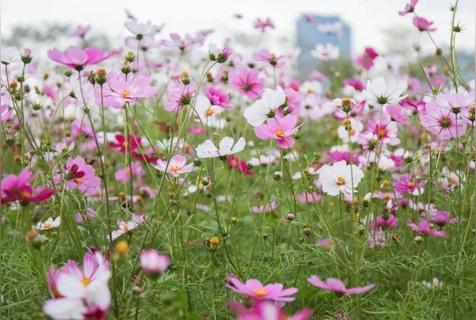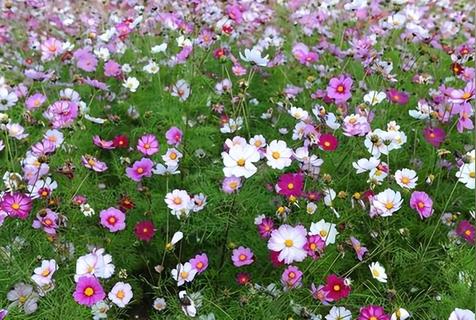 大波斯菊的花语是少女的真心、少女的纯情、清净、高洁、自由、爽朗、永远快乐。