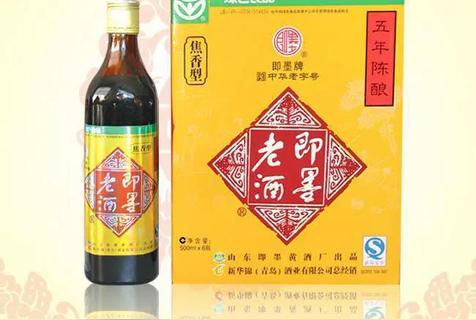 即墨老酒隶属于黄酒,属于甜型、半甜型黄酒,选用大黄米,陈麸麦曲,崂山麦饭石矿泉水依古遗六法自然发酵而得,其中的糖酒酸色香味均为天然产物,酒液深棕红色,焦香浓郁,口味醇厚,在清朝时便畅销全国。