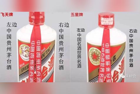 还有一个有意思的点,五行茅台和飞天茅台飘带上面的字是不一样的。飞天牌茅台酒两条飘带上面均绣有“中国贵州茅台酒”字样;五星茅台酒,则一条绣有“中国贵州茅台酒”,另一条飘带绣有“中国名酒世界名酒”。