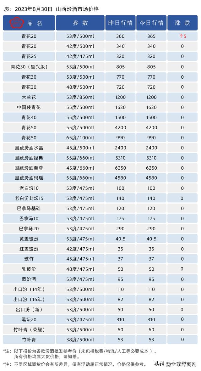 山西汾酒价格汇总∣青花20普涨5元,汾酒控货促涨效果初现