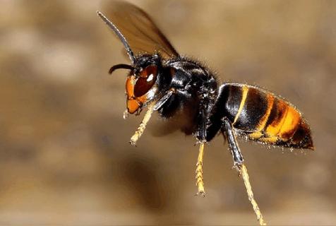 金环胡蜂 (又名:中华大虎头蜂 桃胡蜂 人头蜂 地龙蜂、鬼头蜂 大黄蜂、马蜂)体长达40毫米,是世界上最大的胡蜂。栖息在地下有足球大的圆形蜂巢中,过着分工明确的社会生活。这是攻击性极强的危险性蜂类,敢在分泌树液的树上追击独角仙。还常常袭击蜜蜂的蜂巢,使其全军复没。此虫毒性很强。分布于湖北、湖南、虫毒性很强,一但被蛰,需要立刻就医。金环胡蜂脾气暴躁,攻击性非常强,任何从它面前经过的昆虫它都会主动上前攻击。所以在野外遇到他们最好不要去惹他们,以免受伤。雌蜂:体长40-50毫米。蜂王可达60-70毫米!