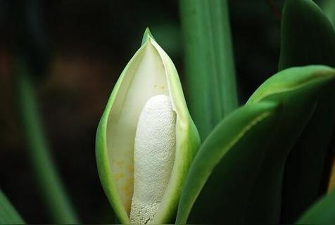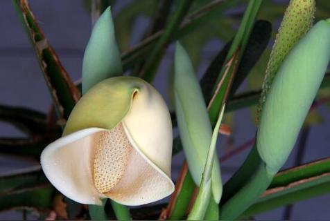 龟背竹开花非常奇特,如船底般的花苞,呈黄白色,花大如掌,内藏肉惠,能结果实,其果实为浆果。龟背竹的花果可食用,肉惠花序鲜嫩多汁,在许多地方可作蔬菜食用,味道清凉可口。