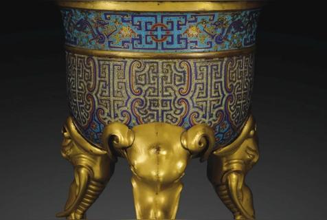 清乾隆 掐丝珐琅仿古纹象首三足熏炉 成交价:313,000 欧元