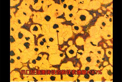 球墨铸铁管热处理的目的是获得铁素体的基体组织,通常要经过高温石墨化退火和低温石墨化退火两个阶段。高温石墨化退火的目的是将球墨铸铁管中的自由渗碳体全部转变为奥氏体和石墨组织,低温退火的目的则是使球墨铸铁管中的珠光体分解为铁素体和石墨。根据技术要求规定,经退火处理后,球墨铸铁管的铁素体含量应在90%以上,珠光体量在10%以下;对于大口径球墨铸铁管,其铁素体含量约为88%,珠光体量约为12%。小口径球墨铸铁管的延伸率应在10%以上,小口径球墨铸铁管的延伸率应大于7%。