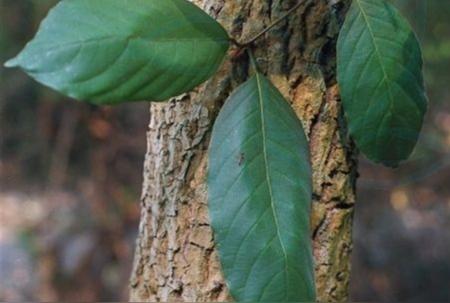 二是单叶互生,叶片纸质或薄革质,椭圆形或卵形,叶边接近全缘,幼叶偶尔有2-3个齿,表面无毛,背面有灰色绒毛,叶柄有褐色毛;