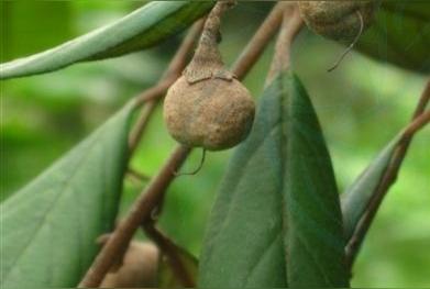 果实圆球形,直径1公分左右,表面有灰色绒毛,8-10月果实成熟。