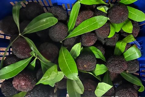 这是潮汕地区独有的水果特产。西胪乌酥杨梅因其独特的口感和风味而受到人们的喜爱。西胪乌酥杨梅的果实深紫红色,核小酥化、肉厚质脆、汁多味甜、富含多种维生素,口感酸甜适口,滋味独特。