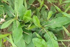 叶散生于茎上,基部叶在花期常常凋萎,下部叶长圆状倒卵形,叶梢尖,叶尾渐狭成有翅的柄,稍充腋坑抱茎,上部叶椭圆形或长圆状椭圆形,近无柄或有短柄,最上部叶极小,全部叶有小尖的锯齿,稀近全缘,叶面皱而有疣状突起,被疏或密的短柔毛,叶背被密长柔毛和腺点;因其叶形似牛舌头,海南人就叫它牛舌草。
