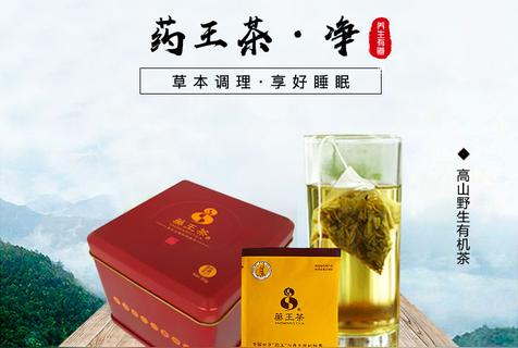 药王茶是一种高山野生茶的商标名。 药王茶的高山野生、有机特性以及对身体良好的保健调理功效,决定了其优良的养生价值。陕西太白山天然植物开发有限公司成立之初,便和陕西中医药大学及相关机构通力合作,从植物的种属、资源分布、有效成分、毒理实验、养生机理、最佳采收期及加工工艺等全方位进行开发研究。历经无数次考察摸索、克服了重重困难、解决了种种难题。“药王茶”最终被国家卫计委特批为食品代用茶、被国家认监委添加入“有机食品认证目录”,且是目录中“野生采集”项下唯一的品种。