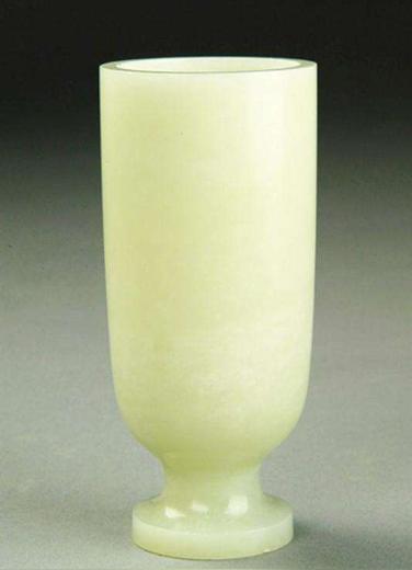 白玉杯杯高11.8厘米,口径5.2厘米,底径4厘米。玉杯呈圆筒形,直口,深直腹。白玉杯系采用优质新疆和田白玉雕琢而成,玉质细腻温润,杯身抛光极好,整体线条流畅,无纹饰,却尽显古朴雅致。白玉杯通常具有典雅的造型和精美的雕刻工艺,其材质被誉为“石中皇后”,具有颜色纯净、质地细腻、光泽温润的特点。