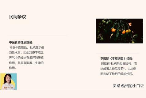 枇杷,这颗小小的果实,蕴含着无穷营养养生妙用。我有一位朋友张阿姨,经常会跟我讲她如何通过枇杷汤来调理身体。她建议我也多吃些枇杷,尤其是在季节交替时,但是也不忘提醒,枇杷是寒性的,如果本身也是寒性体质了,就不要多吃了。