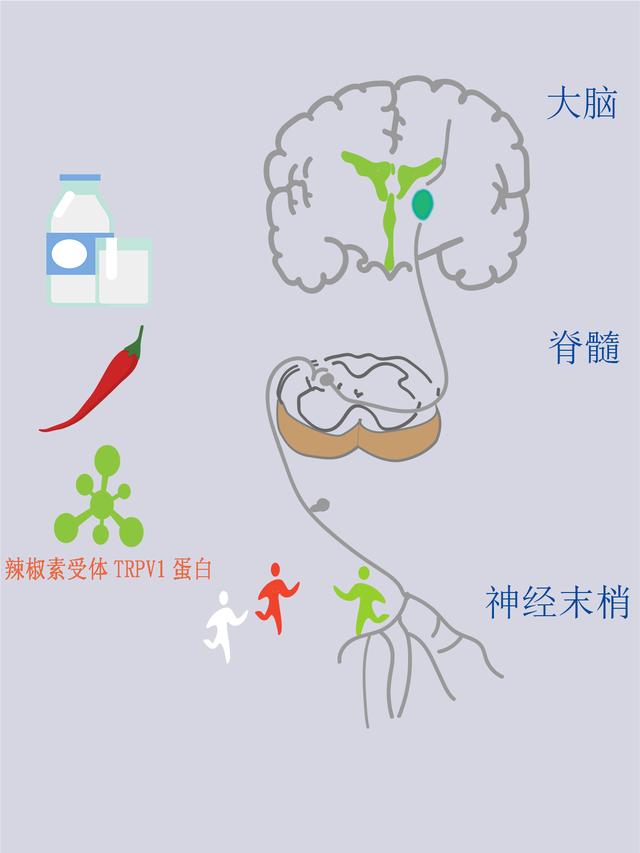辣椒素通过与皮肤黏膜细胞中辣椒素受体TRPV1蛋白结合使我们的大脑皮层感知到灼痛。