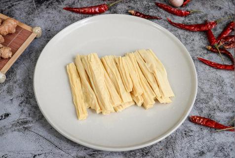 腐竹含有丰富蛋白质和铁、钙、磷、镁等微量元素,营养价值高,具有降血脂、强健骨骼等功效。