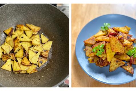 - 切好马上烹饪:切红薯时产生的“涩味”实际上是对美容有益的“多酚”。因此,我们应该把红薯切在食材的最后,然后马上烹饪,以防止其涩味流失,防止变色。