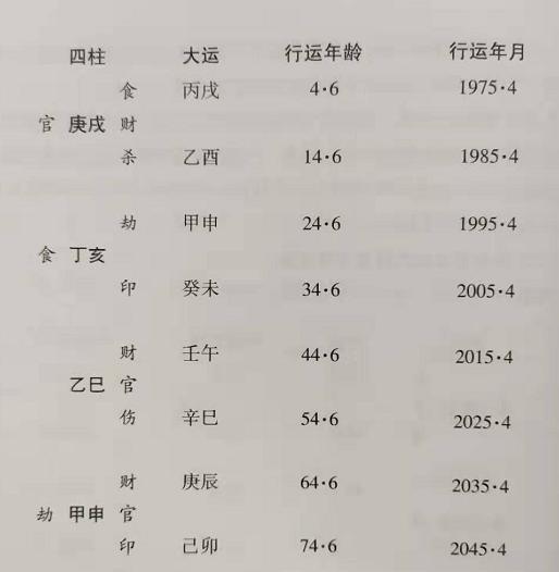 3.为了测算时方便,把推算出的起运时间加到出生的年月日时里,就可知道具体的起运流年流月流日流时,一般也只需推算出起运的流年流月即可。该命造[(一九七O年十月二十三日)+(五年四个月二十六天)]约为阴历一九七六年三月起运。