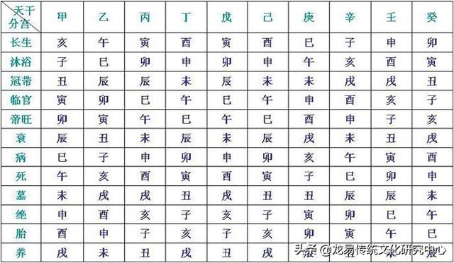 十二长生表又称"十天干生旺死绝表",它不仅反应了阴阳五行在循环过程中的十二个阶段(也称十二宫),同时也体现出了十天干由孕育生长、茁壮旺盛、消亡灭绝的的一个循环过程,这也是自然界规律运行的必然结果。众所周知,命理师们把天干地支融入进四柱命理学之后,这个表格就产生了太多的功效,简单举个例子,如果日主生于甲日,当命盘、大运或者流年流月遇见亥时则为长生、遇见卯时则为帝旺、遇见未时则为入墓,从中我们就可以看出甲木所经历了不同的阶段,也体现了日主在这些阶段中的运势动态及好坏程度,其他天干如年月时也是同理而推。总体而言,从长生到帝旺表示运势状态较好,从衰到绝表示运势状态较差,而胎养则表示运势状态一般,平常而已。下面我们分别把这十二种状态作以下解读。