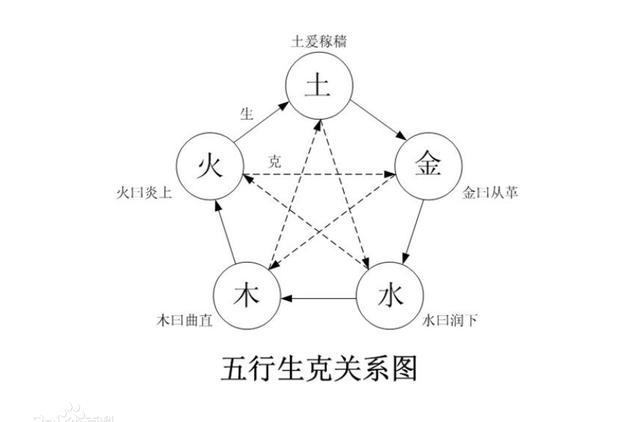金能克木,木坚金缺;木能克土,土重木折;土能克水,水多土流;水能克火,火炎水灼;火能克金,金多火熄。