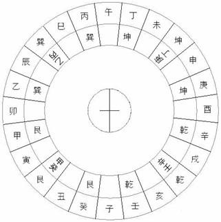 罗盘中有一层叫八路黄泉,黄泉水法即用此盘,如下图: