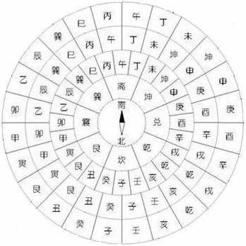 最后,天干还剩“壬癸”二位,把阳干壬分与乾卦,把阴干癸分与坤卦。也就是说,乾、坤二卦纳两个天干,其余各卦都是纳一个天干。