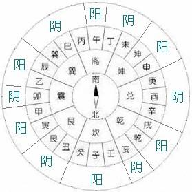 二十四山向是依据什么分别阴阳呢?它是按先天八卦的卦位来分的。先天八卦中,乾坤离坎为四正卦,为阳;震巽艮兑为四维卦,为阴。干支纳于八卦之中,阴阳随之所属。