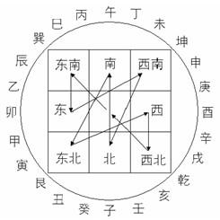 按九宫飞星图和二十四山向图,可以很简单地算出地运之年限。参看下面二十四山向和九宫图可知: