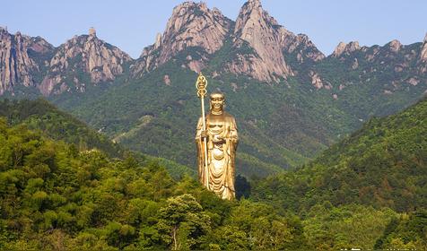 3、九华山:位于安徽省青阳县城西南20公里处,九华山山势雄伟,群峰竞秀,植被繁茂,瀑飞泉涌;气候温和湿润,四季分明,自然风光与人文景观、佛教气氛融为一体,素有“东南第一山”之称,自古就是我国著名的旅游胜地。