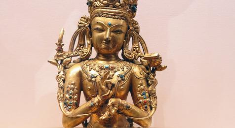 文殊菩萨,梵名Mañjuśrī ,音译作文殊师利、曼殊室利、满祖室哩,意译为妙德、妙吉祥、妙乐、法王子。又称文殊师利童真、孺童文殊菩萨。为佛教四大菩萨之一。与般若经典关系甚深,故称为大智文殊师利菩萨 。