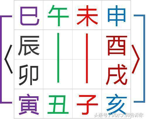 3、寅巳相害——寅方用午、巳方用丑。