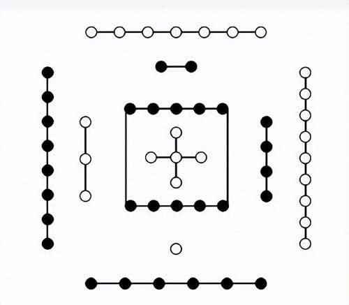 河图洛书都是黑白点图,河图是1到10,洛书是1到9。