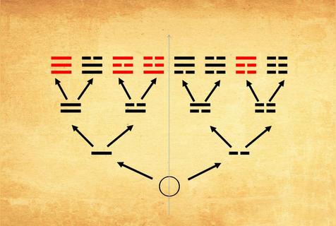 在《周易》当中,我们可以看到64个卦,全部都由“—”与“--”两种符号组成,如果用“一”代表阳的话,那么“--”就代表阴——每一个卦都有6个这样的符号。