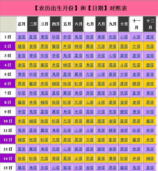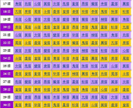 二十八星宿查对表