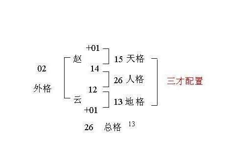 所谓三才,即天才、人才、地才,它们分别是天格、人格、地格数字的个位 数。天、地、人三才数理共计10个数,如果个位数是0,则按10计算。以数理来划分五行。五行之间的关系是:木、火、土、金、水相临相生,相隔相克。《五格剖象法》对“数”定义五行是套用十天干的五行顺序而定,即1、2甲乙木,3、4丙丁火,5、6戊己土,7、8庚辛金,9、10壬癸水。