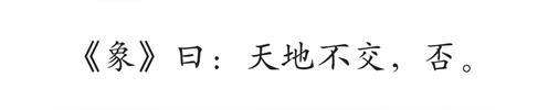 按照我们的理解,天在上,地在下,这不就对了吗?可是《易经》说不对啊,不好啊,是“否”啊!为什么不对,为什么不好?《易传》做了一个解释——