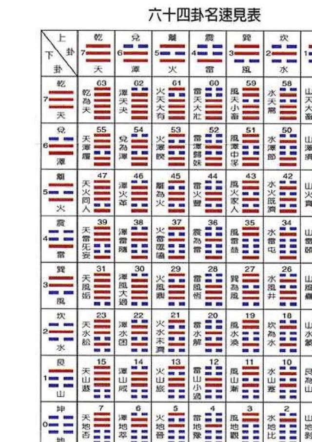 这样八个经卦两两重叠,就形成八八六十四个六个爻的重卦,每一个重卦都有各自的名字。