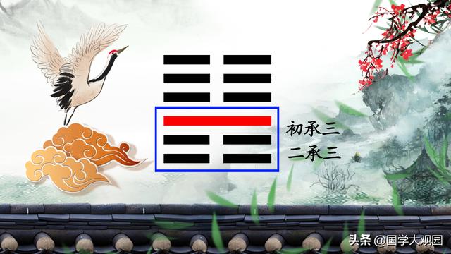 承:是阴相对于阳而言,阴在阳的下边,称为承,表示承受,基础,比如板凳,下面四条腿为阴,上面的座为阳,所以阴相对于阳就叫承。如初承二,二承三等。
