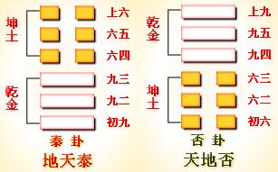 另外还有“变卦”和“覆卦”,六十四卦中次序相连的两个卦,其间的关系“非覆即变”。覆卦是从下往上整个翻过去,例如泰卦与否卦。