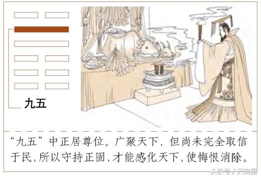 【原文】九五,萃有位,无咎,匪孚;元永贞;悔亡。