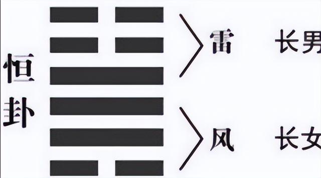 《易经》六十四卦中,“雷风恒”组合为什么称之为“恒”?而不是别的名称呢?这里给大家通俗地解释一下。上卦为雷,为震,人物指长子,下卦为风,为巽,人物指长女,男女婚配,天合之作,组成家庭,生儿育女,从而人类代代相传,生生不息,绵延不绝,所以,称之为“恒”,为恒久之意,只有人类繁衍生息,才有社会,才有历史,才有文明,才有恒久的说法。故雷风为“恒”,这也是雷风恒组合后称“恒”的最为原始的本意。
