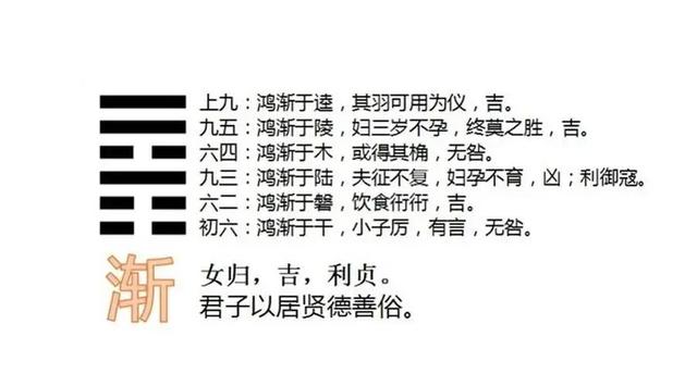 渐卦:女子出嫁,是吉利的事。吉利的占问。