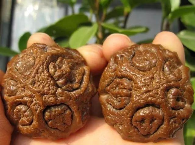 上油的话,可以上核桃油或是纯正的橄榄油。鬼脸经过把玩一段时间后,每个瓣(子房)会发生轻微的晃动,这是很正常的,一般情况下不会漏出。鬼脸的初始颜色为褐色,把玩后会逐渐上色颜色加深,表面见亮起包浆。挑选鬼脸,要选纹路深,人面清晰,表情各异,没有孔洞,没有虫蛀,边角完整的、成熟,手感发沉的果核。