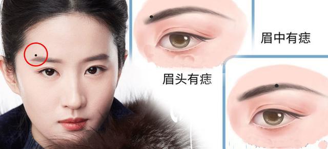眉毛痣的位置与命运(图解)