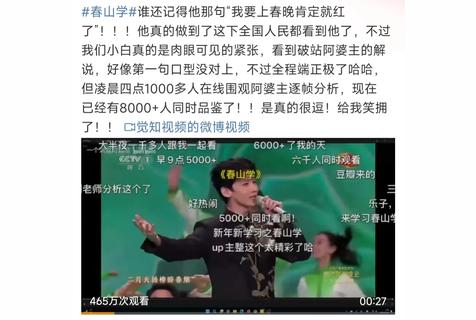 春山学,指的是由白敬亭、魏大勋、魏晨演绎的2024年春晚节目《上春山》引发广泛网友关注,网友主观猜测和解读白敬亭故意抢C位,影响节目的走位,由此延伸出热梗“春山学”的话题热议。