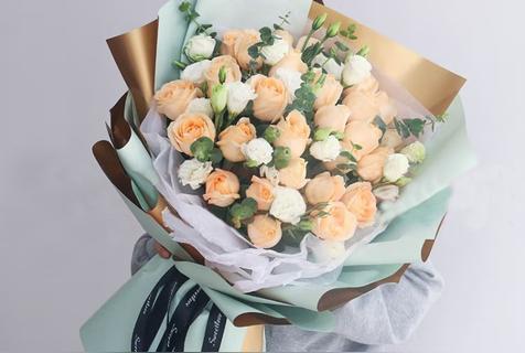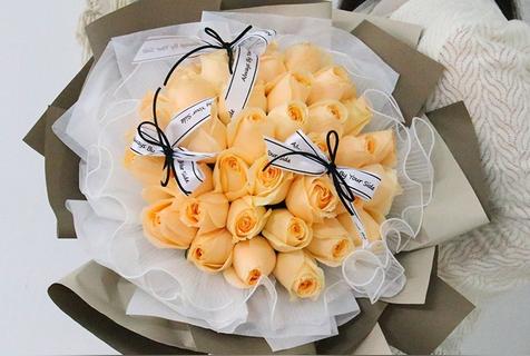 33朵香槟玫瑰代表你是我今生来世、永生永世的幸福;