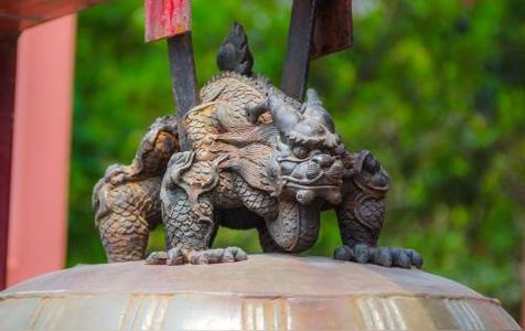 4、蒲牢是古代汉族神话传说为龙九子之一,排行第四,平生好音好吼,洪钟上的龙形兽钮是它的遗像。原来蒲牢居住在海边,虽为龙子,却一向害怕庞然大物的鲸。当鲸一发起攻击,它就吓得大声吼叫。