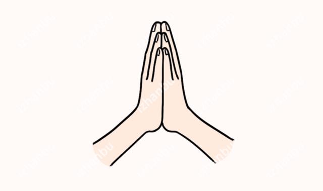 然后,把你的双手合十,并且把左右手的每根手指头都对齐(如下图▼)
