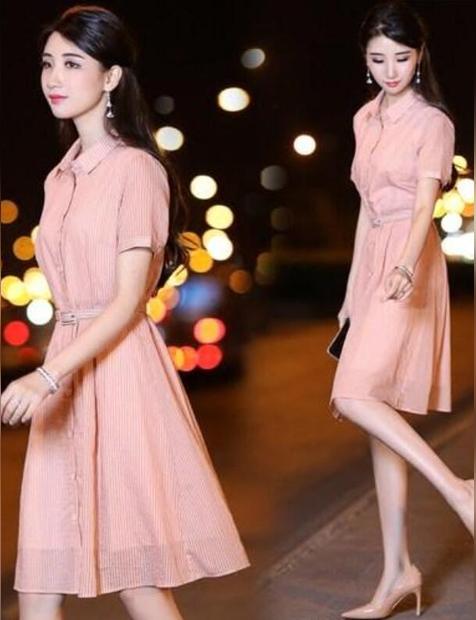 衬衫裙完全把衬衫的元素融入到裙中,既有裙子的飘逸又有衬衫的端正优雅,腰处加入腰带点缀,让腰部更显纤细,搭配7公分的高跟鞋,高挑的仙女形象一览无遗,太完美了吧。